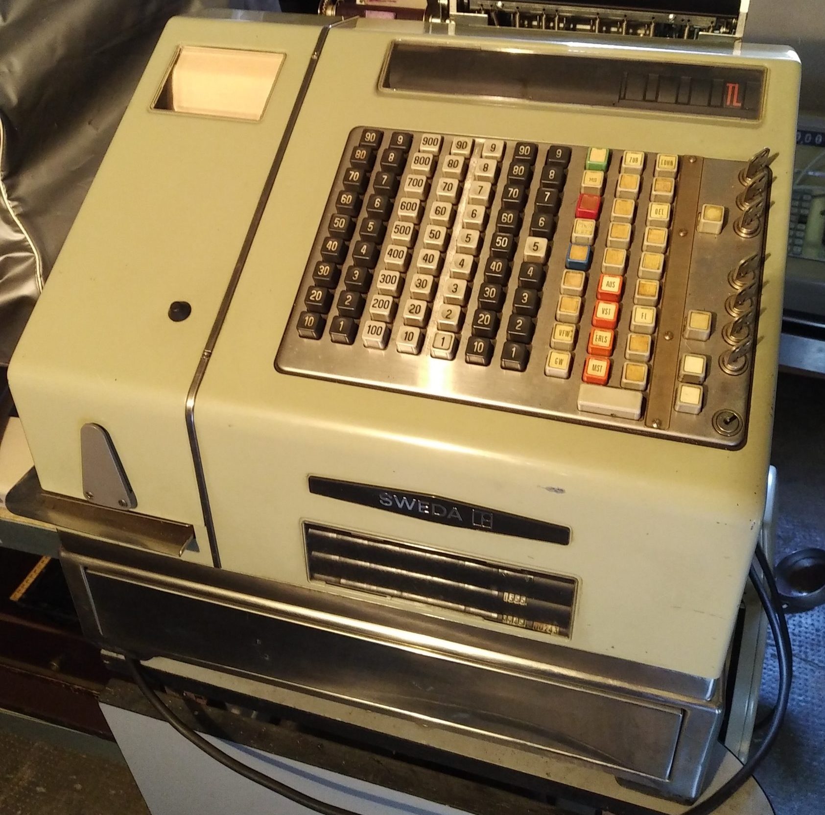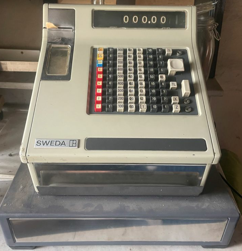 Sweda, wohl 1946 hervorgegangen aus einer schwedischen Kaufmannsgenossenschaft, stieg kurz nach dem zweiten Weltkrieg direkt mit den charakteristischen, aufrechten Gradkantler-Tastenkassen ein, die nach Vorgaben und Wünschen dieser Kaufleute entwickelt wurden. Sweda verwendete von Anfang an (Stahl-, später häufig Edelstahl-)Blech.