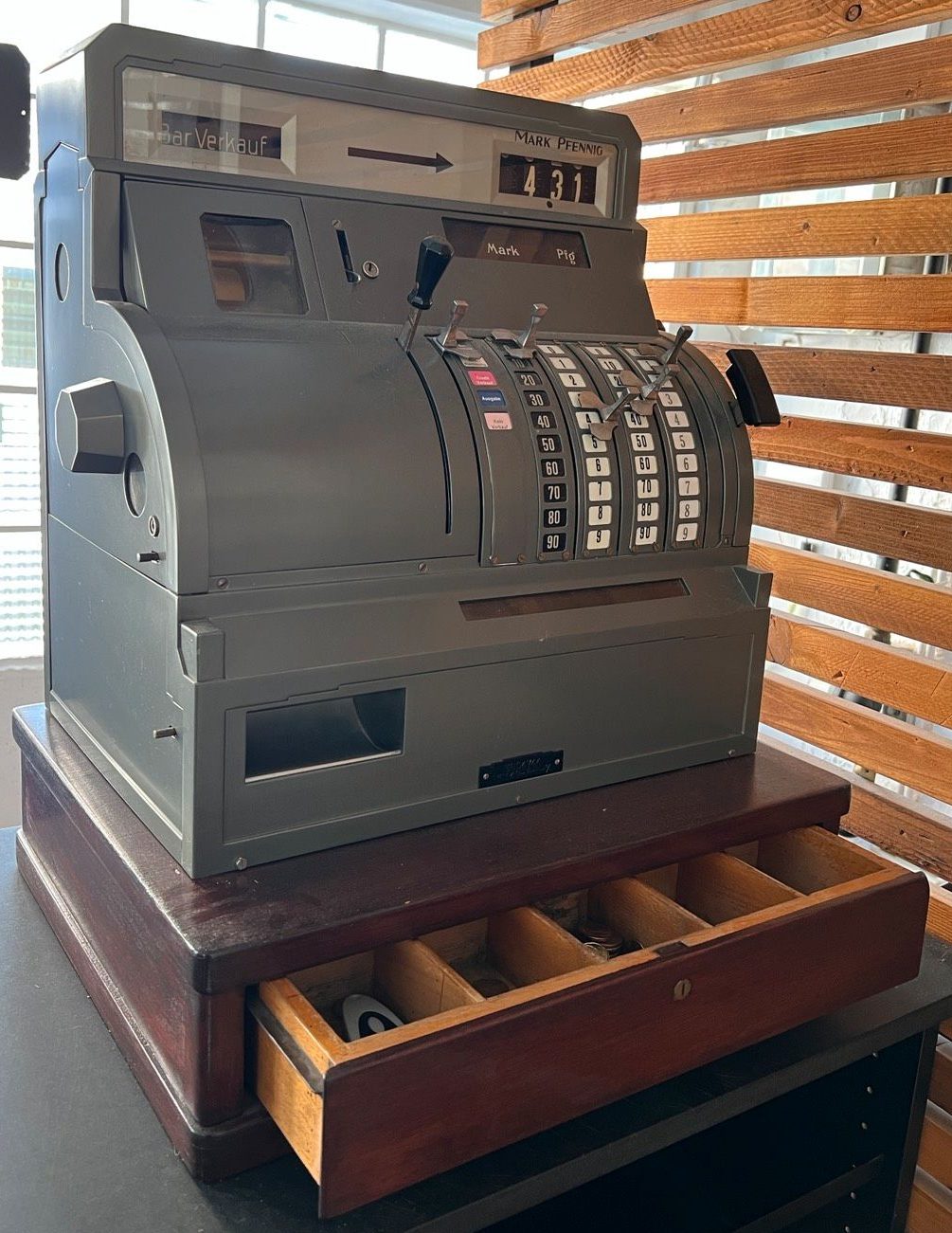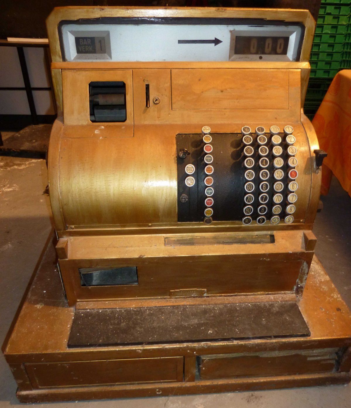 Der Vollständigkeit halber seien die Kassen der Klasse 1800 erwähnt. In Berlin höchstwahrscheinlich nie hergestellt, handelt es sich hierbei um die Technik der Klasse 400 bzw. 800, allerdings in einem kompakten Gehäuse, in das das Druckwerk nahtlos integriert ist. Obgleich ich schon Maschinen der Klasse 1800 mit deutscher Konfiguration (siehe Foto) gesehen habe, hat diese Maschine nie die Bedeutung erlangt, die sie in Skandinavien oder den USA hatte.